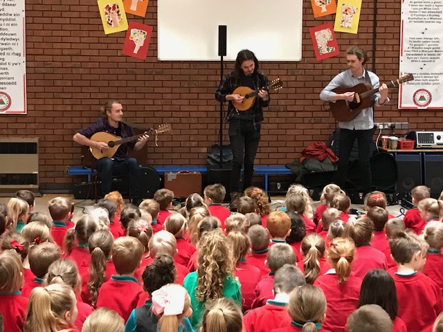 Pleser oedd croesawu un o gyn-ddisgyblion Ysgol Plas Coch yn ôl i’r ysgol y bore ‘ma. Daeth Robin Jones a gweddill y band The Trials Of Cato, William Addison a Tomos Williams, i ddiddanu’r disgyblion a’r staff cyn ateb llwyth o gwestiynau diddorol. Syniad llysgenhadon iaith yr ysgol oedd gwahodd band sy’n defnyddio’r Gymraeg i’r ysgol er mwyn hyrwyddo’r iaith a cherddoriaeth Gymraeg. Dewis amlwg oedd The Trials of Cato gan fod dau o’r tri o’r ardal, a Robin, wrth gwrs, yn gyn-ddisgybl. Cafodd y llysgenhadon gyfle i gynnal cyfweliad â’r band er mwyn eu holi am bwysigrwydd yr iaith yn eu llwyddiant. Diolch yn fawr i The Trials of Cato.