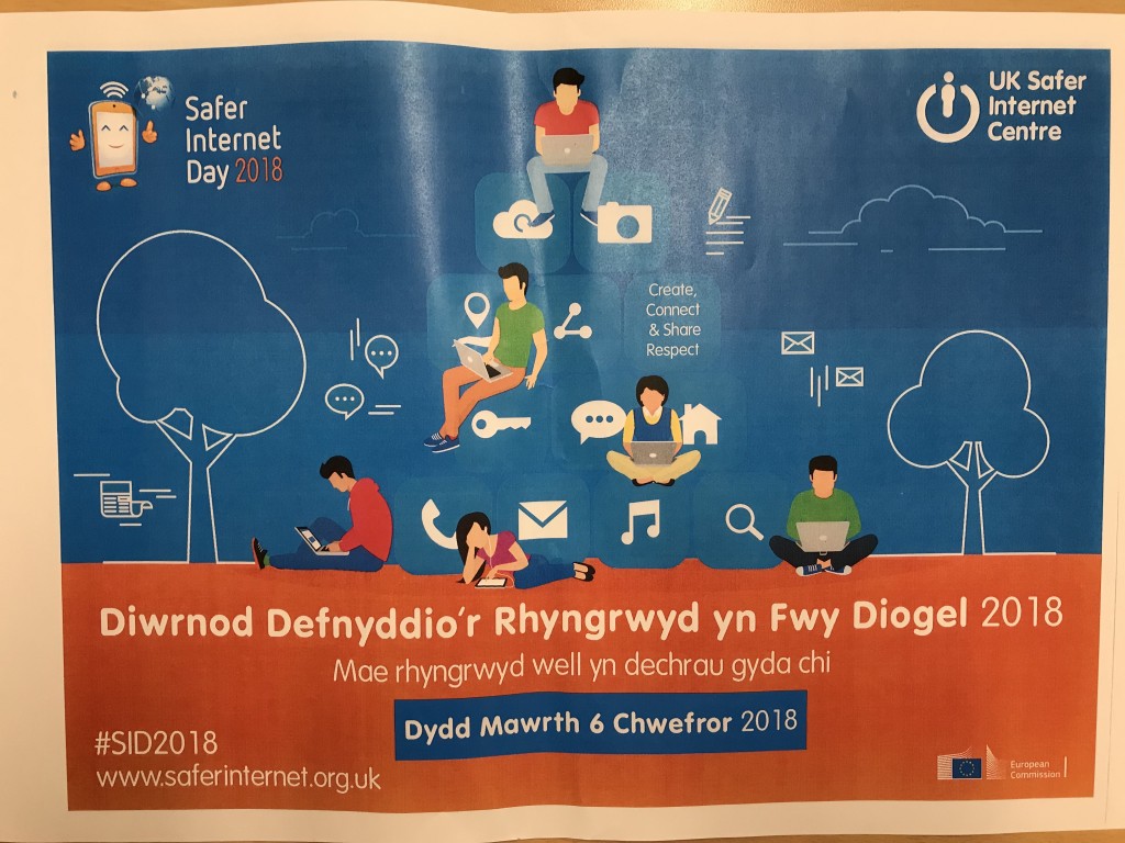 In order to promote Safer Internet Day, the pupils have been involved in various activities throughout the day. After an assembly on using the internet safely and taking a photograph to see how far it travels on Facebook, the pupils went from classroom to classroom learning how to be safer online. If you’re eager to reinforce the importance of safe internet use at home, bilingual resources are available at www.saferinternet.org.uk
