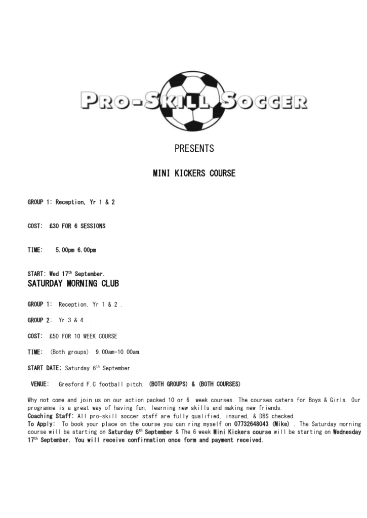 Pro-Skill Soccer – Cwrs Mini Kickers Course