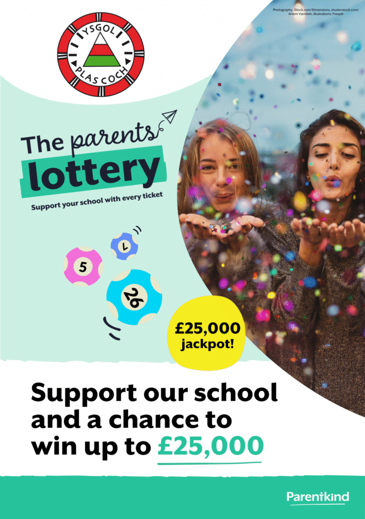 Er mwyn codi arian tuag at weithgareddau’r ysgol, mae’r CRhA wedi cofrestru efo’r Parents Lottery sy’n rhoi cyfle i rieni, teuluoedd a chyfeillion ennill gwobrau ariannol wythnosol, gyda prif wobr o £25,000 gan gefnogi’r ysgol ar yr un pryd! Mae manylion isod yn ogystal a’r ddolen i chwarae’r loteri. Pob lwc!